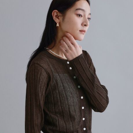 ・シアー感と表情のあるランダムリブニットのカーディガン。