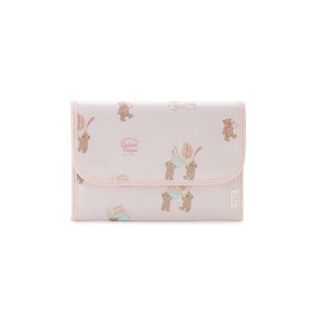 とろけるアイスクリームとベアをカラフル&ポップに描いた、ファミリーでお楽しみいただけるアイスクリームベアシリーズ。大きなアイスクリームを運んだり、スプーンで美味しそうに食べている愛らしいベアの絵柄を、ロゴと組み合わせてキャッチーに散りばめた母子手帳ケースです。ほどよい収納力でマルチに使えるMサイズは、中身が見やすいジャバラ式の仕切り付き。カードが入るスリットやファスナーポケットも付いており、母子手帳や病院の診察券、お金などをしっかりまとめられます。スナップボタンで厚み調整できるので、中身が急に増えても安心。表地のコットンは水や摩擦に強い加工を施し、裏地は抗菌防臭機能が付いた生地を使用しました。色はクリームとピンクの2色展開。同シリーズのママバッグと合わせたり、お揃いの柄のKIDS、BABYアイテムとリンク・コーディネートもお楽しみいただけます。