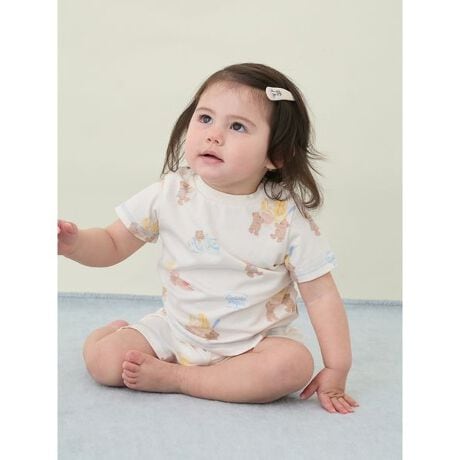とろけるアイスクリームとベアをカラフル&ポップに描いた、ファミリーでお楽しみいただけるアイスクリームベアシリーズです。接触冷感を施したBABYサイズの総柄Tシャツは、汗ばむ日にも着用しやすい1枚。大きなアイスクリームを運んだり、スプーンで美味しそうに食べている愛らしいベアの絵柄を、ロゴと組み合わせてキャッチーに散りばめました。肩にスナップボタン付きで着脱しやすいのもポイント。袖や裾に入れた配色ステッチでアクセントを効かせ、可愛い印象に仕上げています。色はクリームとピンクの2色展開。同シリーズのショートパンツやBABY雑貨と合わせたり、同時期に展開するスムーズィーライトのグラデーションボーダーポンチョとの組み合わせもおすすめです。LADIES’、HOMME、KIDSアイテムとリンク・コーディネートもお楽しみください。