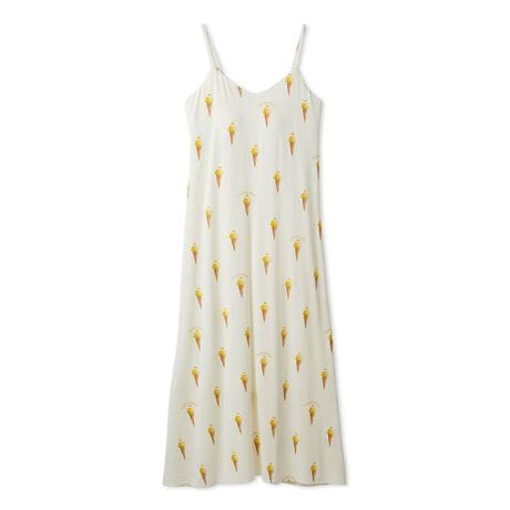 猛暑の夏をちょっぴり涼しくHAPPYに彩る、冷たいソルベをモチーフにした接触冷感のレーヨンシリーズです。レモン、ストロベリー、ソルティーブルーの3つのフレーバーをおいしそうに描いた、総柄プリントのキャミワンピース。ひんやりした肌触りのなめらかな素材感で、取り外し可能なカップと膝丈の裏地も付けました。切り替えのないシンプルなシルエットで、単体でも重ね着しても着用しやすい1枚です。お気に入りのソルベショップでフレーバーやトッピングを選ぶような、心ときめくひとときをお楽しみください。色はイエロー、ピンク、ブルーの3色展開。同時期に展開するスムーズィー2BDシリーズとコーディネートするのもおすすめです。