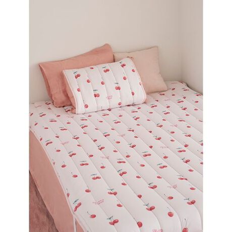 可愛いチェリーとクールなブルーベリーのモチーフを、夏らしくみずみずしいタッチで描いたフルーツ柄の寝具シリーズ。涼しげなフルーツを総柄プリントしたシングルサイズの敷きパッドです。汗ばむ時期に心地良い眠りをサポートする、接触冷感加工のさらっとなめらかな生地に、抗菌防臭機能を備えた中綿を使用しています。初夏から秋口にかけて長くご使用いただけます。色はピンクとブルーの2色を揃えました。同シリーズの寝具やルームウェアとコーディネートしてお楽しみください。