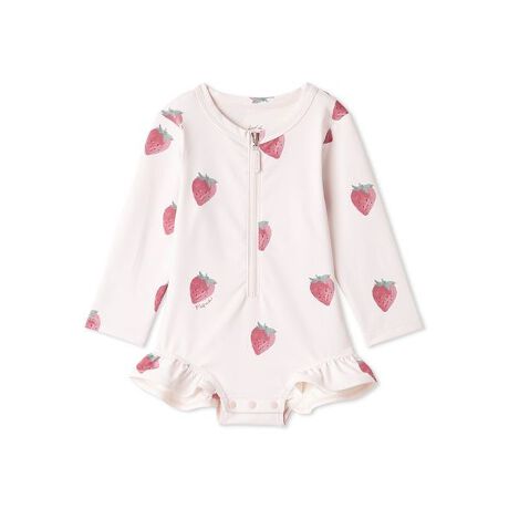 可愛いイチゴと、クールなシャーク柄をプリントした、子どもたちのためのスイムウェアがこの夏初登場。股下にスナップを付けたロンパース型のBABY水着です。ストレッチ性に優れた生地はUVカット機能を備え、ロンパースタイプなのでおむつ替えもスムーズ。真夏の水遊びシーンに映える、背中の発泡ロゴプリントもポイントです。色はイチゴ柄のピンクとシャーク柄のブルーの2色展開。同シリーズのプールタオルと合わせてギフトにしたり、お揃いの柄のKIDSサイズと合わせてきょうだいでリンク・コーディネートもお楽しみいただけます。