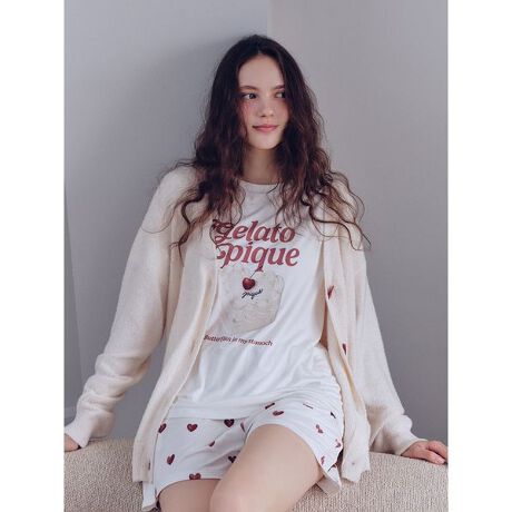 温かみのあるじんわり滲んだ手描き風のハート柄で、おうち時間を癒しのひとときに。「胸がきゅんとする」をコンセプトにデザインした、ハート柄のシリーズのショートパンツです。ハート柄に配色のロゴを効かせた、甘すぎない絵柄がポイント。ひんやりとした肌触りがお楽しみいただける、なめらかな接触冷感素材を使用しました。両サイドにポケット付きのスタンダードなデザインです。色はオフホワイト、ピンク、ブルーの3色展開。同シリーズのケーキワンポイントTシャツと合わせてお楽しみください。
