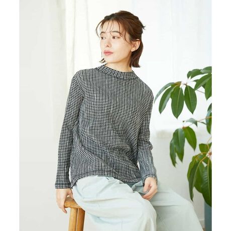 上品な細かいチェックの大人カットソー