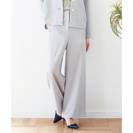 快適でONの日もOFFの日にも、あらゆるシーンに使えるセミワイドパンツ。やや前に振った切り替えで腰部分を立体的なデザインに。また後ろウエストはゴム入りで穿き心地楽ちん。アジャストしながらすっきりとしたパンツに仕上げました。正面からでも見える切り替えラインの効果で、センタープレスが無くてもスタイルアップ見えするパンツです。ジャケット合わせのきちんとスタイル、スニーカー合わせのカジュアルダウンのコーデも楽しめます。シワになりにくいので旅行着にもおすすめです。同素材の ジャケット【NHDGF88330】やノーカラージレ【NHDGF89260】とのセットアップスタイルも楽しめます。同素材のワンピース【NHEGF88330】もございます。