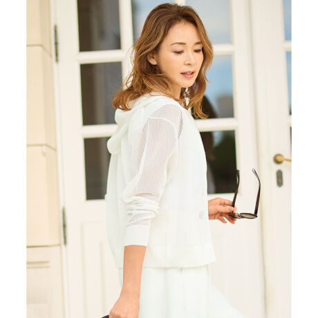 ニットの気軽さに女性らしさを添えたジップパーカー■デザイン程よいボリューム感と、袖のエレガントなフォルムが特徴のジップパーカーです。ニットならではの気軽さがありながら、素材感とシルエットで女性らしさを引き立てたデザインに仕上げています。温度調節や日よけとしても、さっと羽織っていただけます。■素材目面が美しく、形をきれいに保ちやすい、上品な光沢感が特徴の素材です。軽やかでさらっとした肌触りに、程よいハリ感があり、肌離れの良さもポイントです。自然なドレープが美しく、エレガントなシルエットを演出してくれます。■同素材プルオーバー(KRW7LM0453)