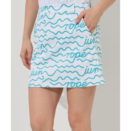 ボーダーをベースにロゴをアレンジした、夏らしいウェーブ柄が目を引くスカート。