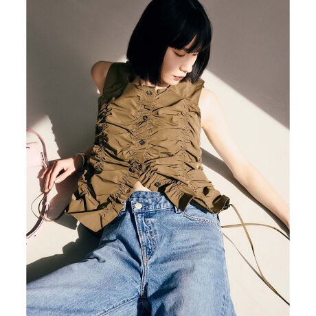 くしゅっとした表情が特徴のフロントボタン開きジレトップス。