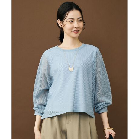 軽やかな透け感で大人の抜け感をまとうドルマンニットプルオーバー■デザイン素材の程よいハリ感を活かしたドルマンニットプルオーバーです。繊細なシアー感が、軽やかさの中に上品さを添え、大人の女性にも取り入れやすい一枚に仕上げました。ボトムを選ばず合わせやすく、幅広いスタイリングに活躍するアイテムです。■素材目面が美しく、形をきれいに保ちやすい、上品な光沢感が特徴の素材です。軽やかでさらっとした肌触りに、程よいハリ感があり、肌離れの良さもポイントです。自然なドレープが美しく、エレガントなシルエットを演出してくれます。■同素材パーカー(KRW7LM0454)