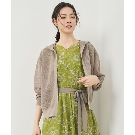 ニットの気軽さに女性らしさを添えたジップパーカー■デザイン程よいボリューム感と、袖のエレガントなフォルムが特徴のジップパーカーです。ニットならではの気軽さがありながら、素材感とシルエットで女性らしさを引き立てたデザインに仕上げています。温度調節や日よけとしても、さっと羽織っていただけます。■素材目面が美しく、形をきれいに保ちやすい、上品な光沢感が特徴の素材です。軽やかでさらっとした肌触りに、程よいハリ感があり、肌離れの良さもポイントです。自然なドレープが美しく、エレガントなシルエットを演出してくれます。■同素材プルオーバー(KRWMLM0453)