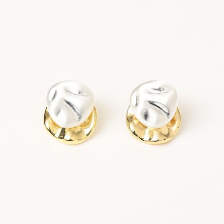 ぷっくりと凹凸のあるモチーフを組み合わせた、レイヤード仕様のピアス。