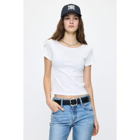 【SUVIN GIZA BOAT NECK TEE/ スヴィンギザ ボートネックティー】■ポイントデコルテを美しく見せる深Uネックが印象的なシンプルデザインのカットトップス。無地だからこそシルエットの美しさが際立つ、3月商品として着回し力の高い半袖アイテム。■ディテール伸縮性のある柔らかなカットソー素材を使用し、身体に程よくフィット。コンパクトな半袖デザインで腕まわりをすっきり演出。深Uネックが抜け感をプラスします。■スタイリングデニムにタックインしてヘルシーに、ジャケットやシャツのインナーとして合わせれば大人のシンプルコーデが完成します。