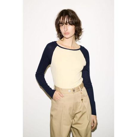 THROW by SLY【FINE TOUCH RAGLAN L/S TOPS】■POINT薄くて柔らかくなめらかな肌触りのラグランロングスリーブトップス。■DETAILデコルテラインがきれいに見えるネックラインと身頃と袖のバイカラーが着用するだけで目をひき、ベーシックな形なのでデイリー使いしやすい万能アイテムです。■STYLING程よくコンパクトなサイズ感なのでデニムスタイルはもちろん、キレイ目なボトムにも幅広くデイリーに合わせやすいです。■FABRIC/MATERIAL薄くて柔らかくなめらかな肌触りの天竺素材を使用。■透け感:あり■光沢感:なし■伸縮性:あり■裏 地:なし※お取り扱い上のご注意・本品は素材の特性上色落ちします。・洗濯、クリーニング、着用(使用)時に他の衣類や雑貨、家具類に色移りする事があります。・特に汗や雨等で湿った状態では、色落ちが顕著になります。・白、淡色との組み合わせは避け、お取り扱いには十分ご注意下さい。[注意事項]※画像の商品はサンプルです。実際の商品と仕様、加工が若干異なる場合があります。※画像の商品は光の照射や角度、お使いのモニター環境により、実物と色味が異なる場合がございます。※着用、お取り扱いの際は、アテンションタグをご確認ください。※一部予約商品につきましては生産上の都合によりお届け予定日や店頭発売と前後する場合もございます。※追加生産商品は、一部の店舗、通販で販売中の場合がございます。予めご了承下さい。