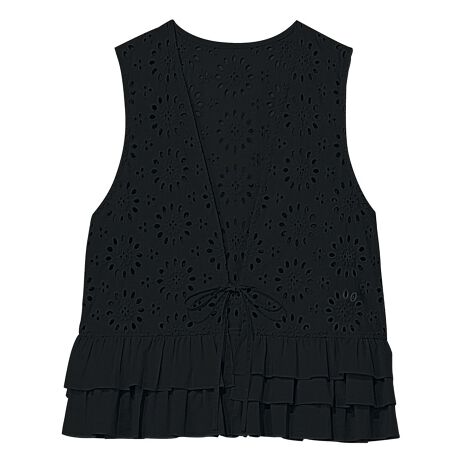 繊細なカットワークレースが目を引く、軽やかな印象のジレ。