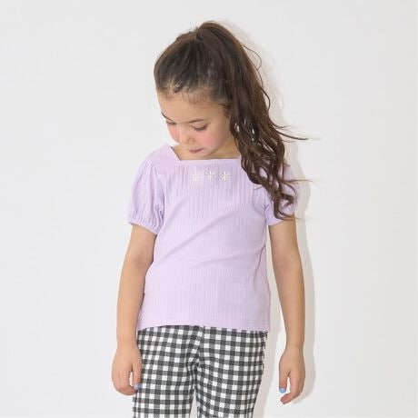 スクエアネックパフスリーブアソート刺しゅうトップス