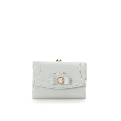 ◇SAMANTHAVEGA(サマンサベガ)のハニーフラッター折財布大人気ベストセラーの「フラッター」シリーズより、新作が登場です。キラキラのビジューと立体的なリボンが特徴なハニーフラッターが新登場。▽デザイン・立体的なリボンで甘めのフェイスに。・フロントのリボン以外の装飾を控えた高級感溢れるシリーズ。・フロントのリボン中央のビジューは、偏光ビジューでキラキラ仕様です。▽機能性・少し幅広めなサイズ感で現金派な方もしっかり収納いただけます。・小銭入れは開閉のしやすいガマ口を採用。ワンタッチで取り出しもしやすいです◎・お札部分も仕切り付きで、仕分けして整理しやすいです。カードポケット×6フリーポケット×2