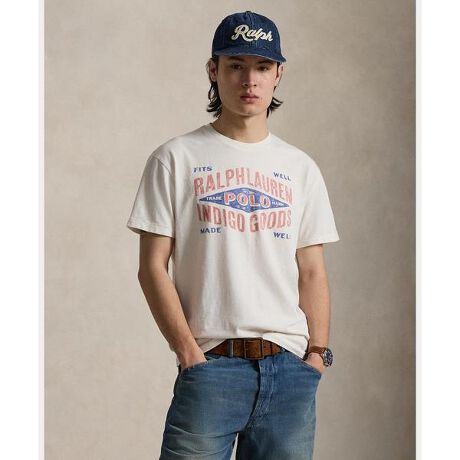Polo Countryコレクションのひとつ。Indigo Goodsのグラフィックの特別なプリントをあしらい、クラシックなアメリカーナスタイルにオマージュを捧げたコットンTシャツ・クラシックフィット:胸、ウエスト、袖にかけてゆったりとしたカット、肘上までかかる低いアームホール・クルーネック・半袖・フロント中央にFits Well、Ralph Lauren Polo Indigo Goods、Made Wellのプリント・右裾にPolo Country Ralph Laurenのラベル・モデル身長185cm、着用サイズM 【素材】・本体:綿 100%【生産国】バングラデシュ