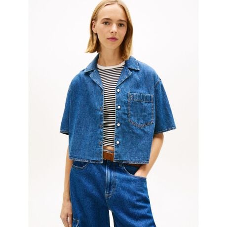 シャンブレークロップドショートスリーブシャツ