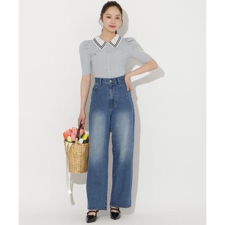 ビジューポケットワイドデニムパンツ