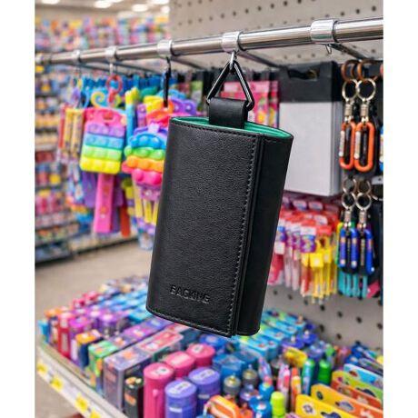 カラビナでベルトにも付けることができる、コンパクトな三つ折り財布。