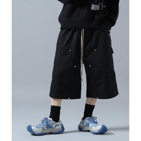 無骨なディテールとクリーンなシルエットを掛け合わせた「STTWILL W-KNEE SHORTS」。