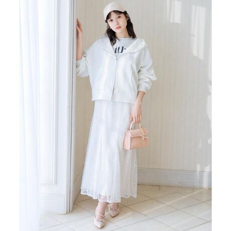 繊細な素材感が映えるレースマーメードスカート【Design】・裾に向かって広がるマーメードシルエットが女性らしいラインを演出できるスカート。・繊細なレースデザインがスタイリングに華やかさをプラスします◎・すっきりとしたウエストまわりでトップスインもきれいに決まるデザイン♪・ブラウスやニットはもちろんTシャツを合わせたカジュアルミックススタイルもおすすめです!・後ろゴム仕様で、程よくフィットし、快適な着心地に◎・左ファスナー仕様【Fabric】・繊細なレース素材を使用し、上品で女性らしい風合いに。・ホワイト、ピンク、ブラックの3色展開となります。【Care】ドライクリーニング