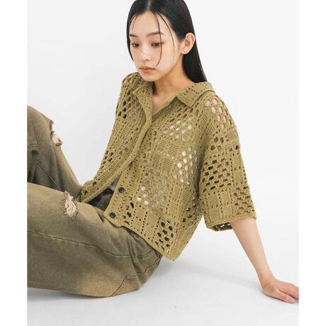 【抜け感のあるスタイリングが叶うクロシェニットシャツ】