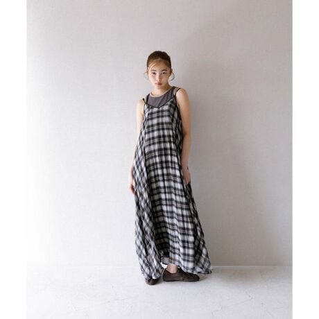 チェックプリーツキャミワンピース