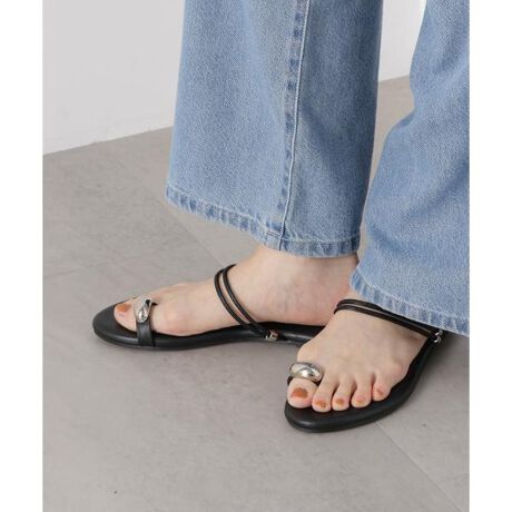 キラッと親指に光るメタルモチーフが、アクセサリーのような華やぎを添えるフラットトングサンダル。程よいカジュアル感がありつつ上品さも兼ね備えているので、大人っぽくこなれた足元を演出してくれます。