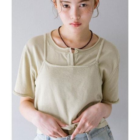 ベーシックで着回しやすい半袖カーディガンと、前後2WAY仕様のキャミソールがSETになったアイテム。くるっと巻いた袖口がアクセントになっており、程よくゆとりのあるサイジングは抜け感を叶えます。SET使いはもちろん、別々でも使用いただけるので幅広い着こなしが楽しめます。