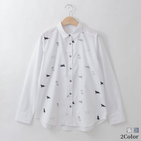 可愛らしい猫の刺繍を散りばめた遊び心あふれるシャツ。