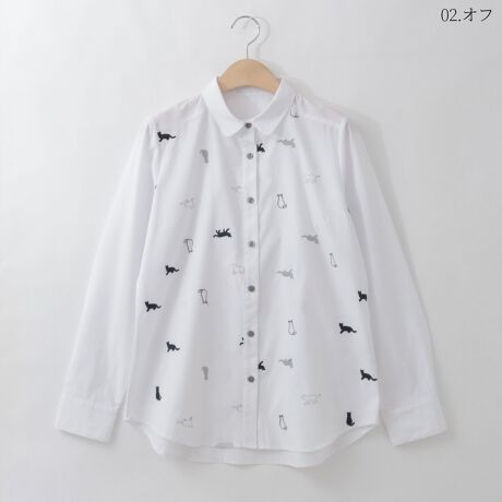 可愛らしい猫の刺繍を散りばめた遊び心あふれるシャツ。