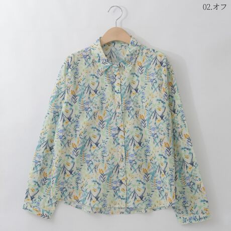 カラフルなボタニカルフラワープリントが目を惹くデザインシャツ。