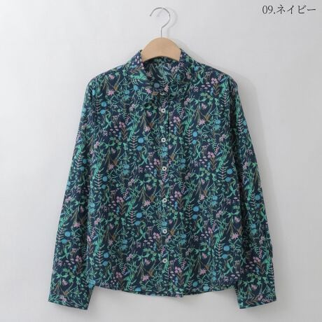 カラフルなボタニカルフラワープリントが目を惹くデザインシャツ。