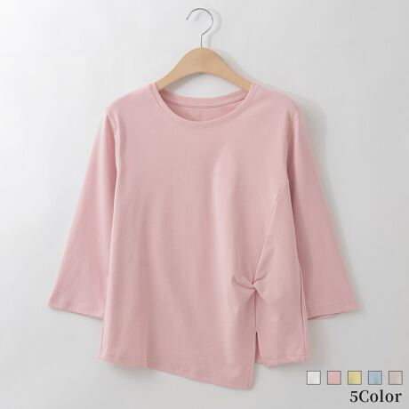 サイドにタックディテールを加えたイレギュラーカットのヘムラインが特徴的なデザインです。
