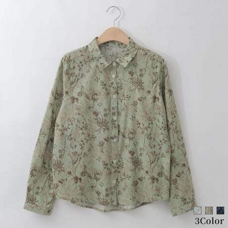 【洗える/日本製】バイカラーフラワープリントシャツ