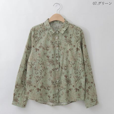 【洗える/日本製】バイカラーフラワープリントシャツ