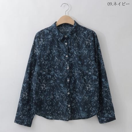 【洗える/日本製】バイカラーフラワープリントシャツ