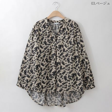 アートテイストな総柄モチーフが目を惹く、スタイリングの主役にぴったりな一枚です。