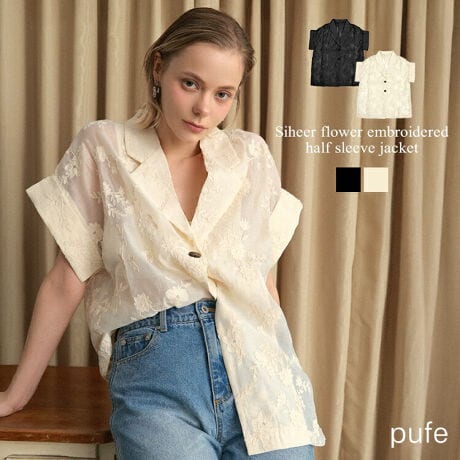 【pufe】シアーフラワー刺繍ハーフスリーブジャケット