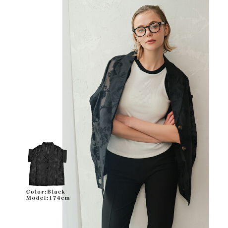 シアーフラワー刺繍ハーフスリーブジャケット