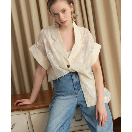 【pufe】シアーフラワー刺繍ハーフスリーブジャケット
