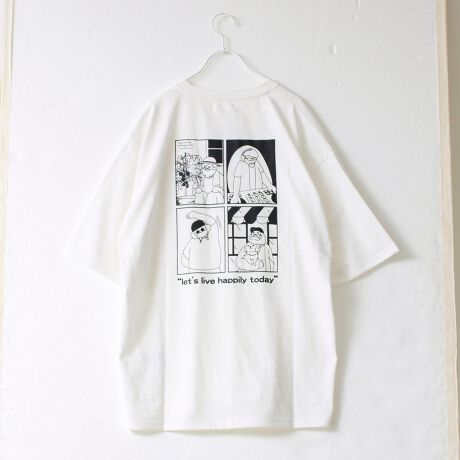 背面には4コマ風のグラフィックを配置。日常のワンシーンを切り取ったようなデザインで、後ろ姿まで印象的。