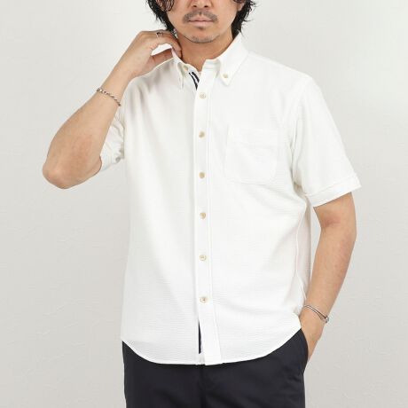 《ビジカジ対応》トリコットサッカーテープBD SS 半袖ボタンダウンシャツ 26SS
