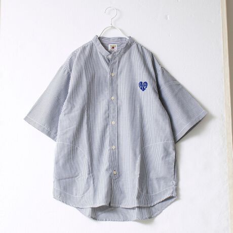 #FREDY&GLOSTER #FREDYMAC #バンドカラーシャツ #半袖シャツ #ワイドシルエット #ユニセックス #大人カジュアル #シンプルコーデ #ワンポイントロゴ #夏コーデ