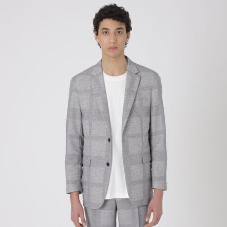 【アイコンチェック柄をプリントしたカラミ織り素材テーラードジャケット】