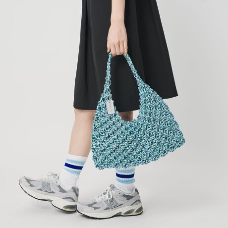 パラコードを使用した、表情豊かな編地が魅力のワンショルダーバッグ。