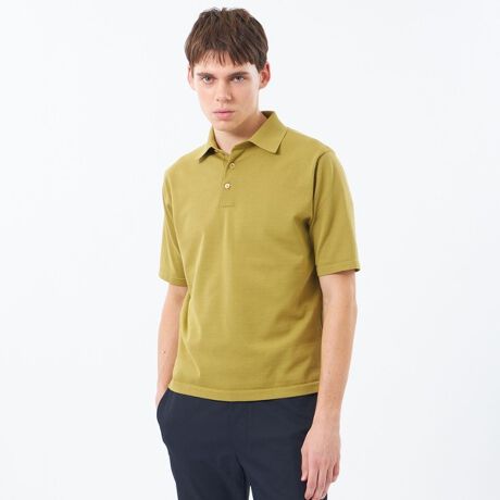 ショートスリーブのポロ襟プルオーバーニット。ジャケットのインナーとしてはもちろん、単調になりがちな夏場のコーディネートに、大人っぽい上品さを添える一枚です。