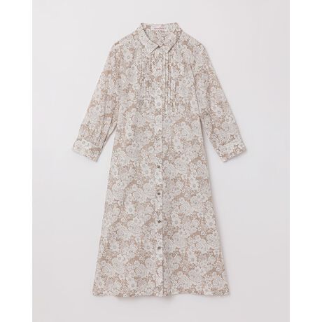 英国リバティ社のプリントデザイン(単色の花:Theodore Manor)を使用したロング丈のシャツワンピース。