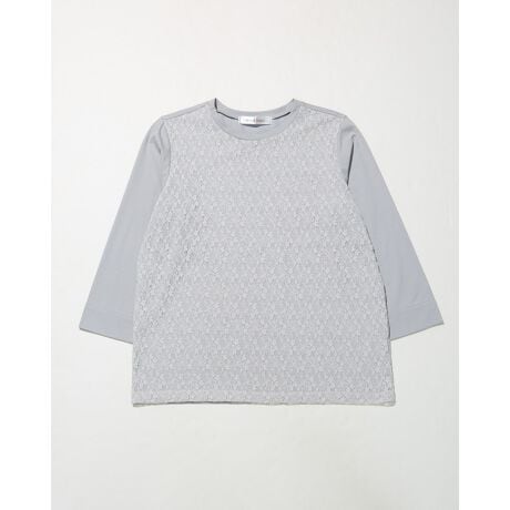 滑らかな素材のカットソーに繊細なレースを重ねた、立体感と高級感のある初夏のプルオーバー。